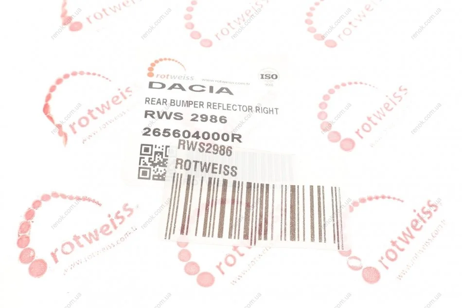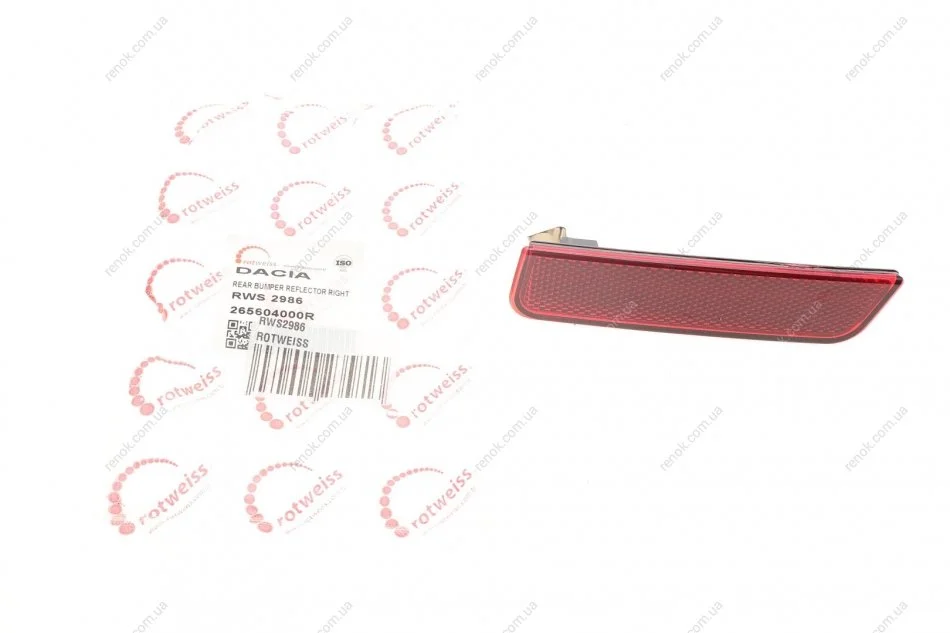 Световозвращатель бампера (заднего) Renault Duster 10-17 (R) ROTWEISS RWS2986 (265604000R, 7701208720)