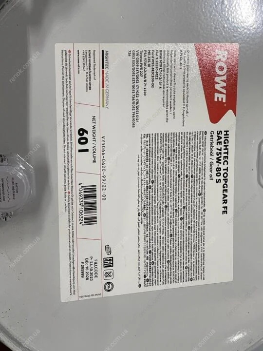 Олива трансмісійна HIGHTEC TOPGEAR FE SAE 75W-80 S (60 L) ROWE 25066-0600-99