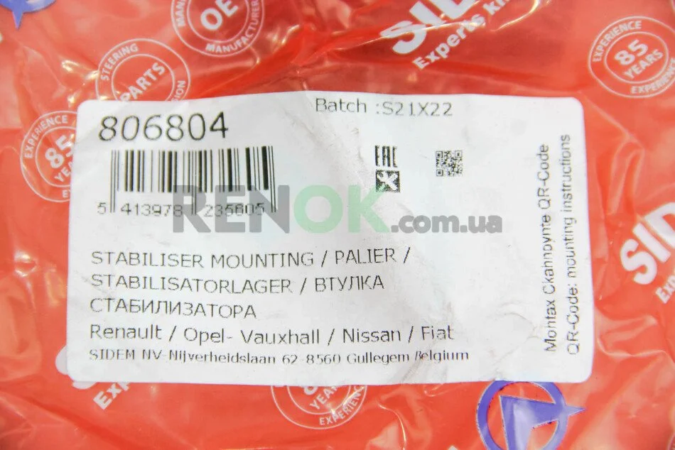 Втулка стабилизатора SIDEM 806804 (8200629180, 8200048177, 8200845492)