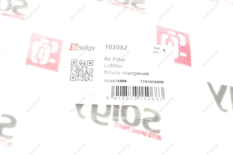 Фильтр воздушный Renault Kangoo/Dacia Logan 1.2 16V 01- (без картонной упаковки) SOLGY 103082 (1654600Q0B, 1654600Q2H, 1654600QAN)