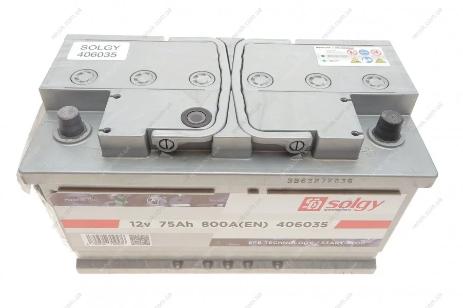 Аккумуляторная батарея 75Ah/800A (315x175x175/+R/B13) (Start-Stop EFB) SOLGY 406035