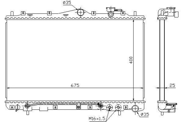 Размеры радиатора: 400 X 675 X 25
