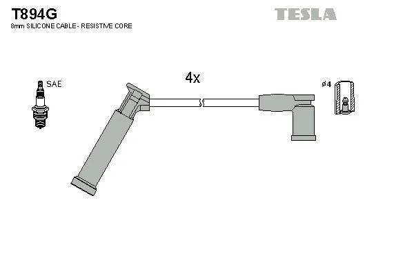 Кабель зажигания, к-кт Ford Fiesta,Fusion,Focus I 1.25,1.4,1.6 96- TESLA T894G