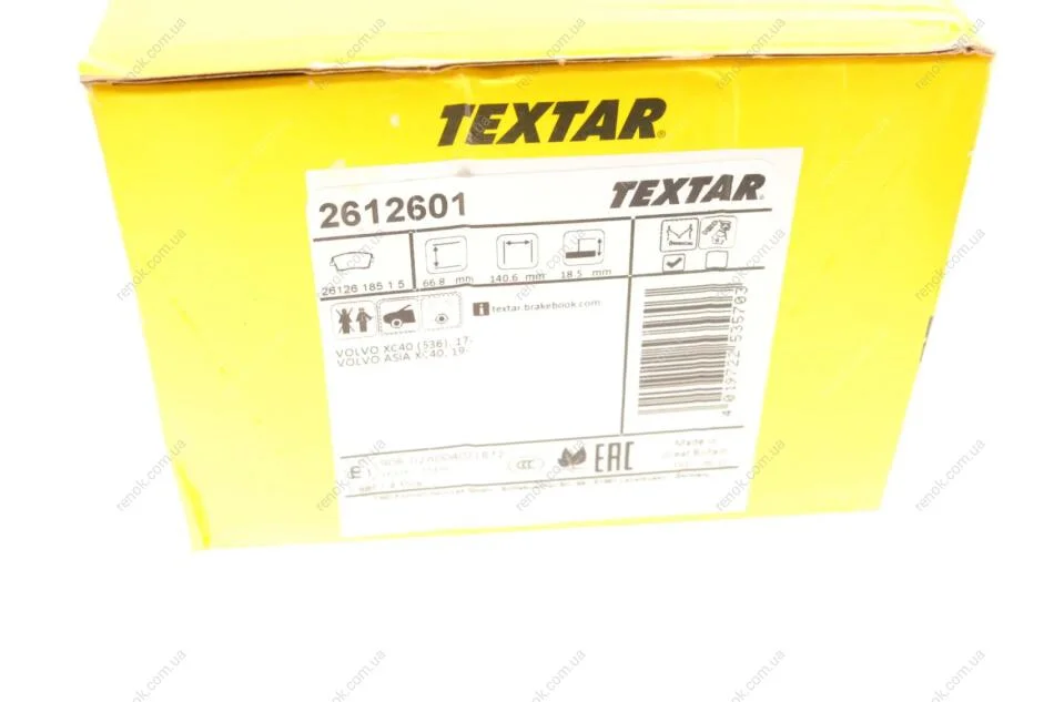 Колодки тормозные (передние) Volvo XC40 17-(с аксессуарами) TEXTAR 2612601 (31471407, 31471408, 32276931)