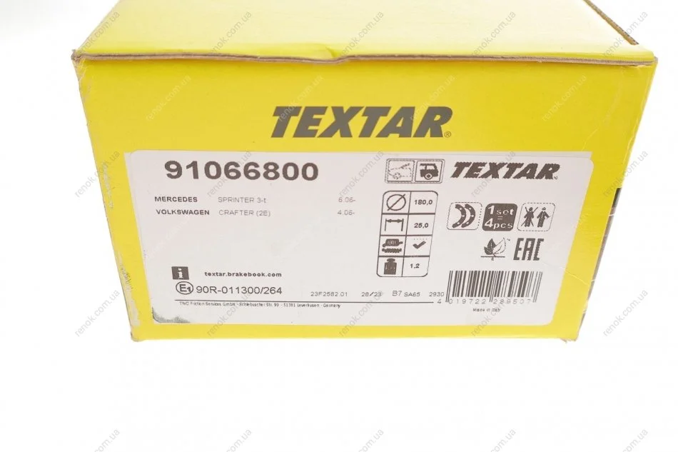 Колодки ручника MB Sprinter (906)/VW Crafter 2.0/2.5 TDI 06-(180x25) (с пружинками) TEXTAR 91066800 (906420032028, A906420032028, 2E0698525)