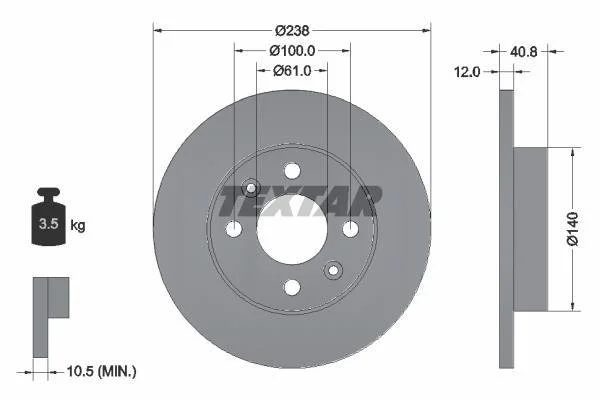 Тормозной диск TEXTAR 92036100 (6001547684, 6001549211, 7700704705)