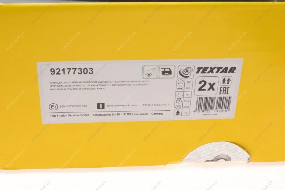 Аналоги "92177303 TEXTAR":