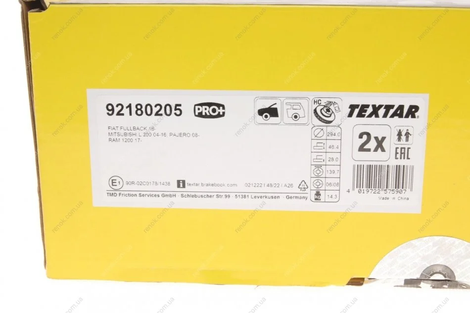 Аналоги "92180205 TEXTAR":