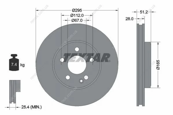 Диск тормозной (передний) MB A-class (W176)/B-class (W246)/ GLA-class(X156) 11-18 (295x28) PRO TEXTAR 92241603 (246421011207, A246421011207, 2464210112)