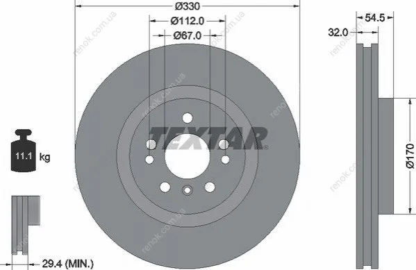 Диск тормозной (передний) MB M-class (W166) 11-15/ GLE (W166) 15- (330x32) PRO+ TEXTAR 92260405 (1664210612, A1664210612, 1664211300)