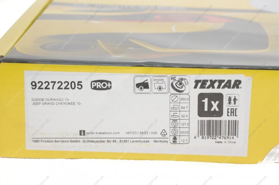 Гальмівний диск TEXTAR 92272205 (68035012AD, 68035012AB, K68035012AD)