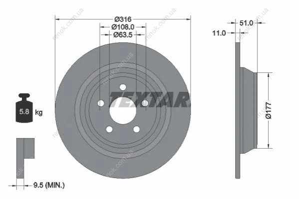 Диск тормозной (задний) Ford Galaxy/S-max/Edge 15-(316x11) PRO TEXTAR 92291903 (2019881, 5310798, E1GC2A315CB)