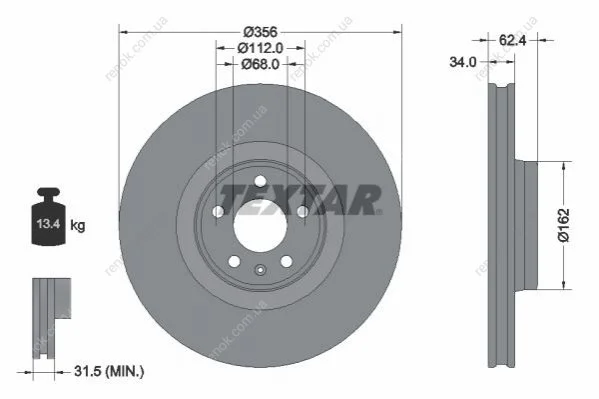 Диск гальмівний TEXTAR 92293505 (4G0615301C, 4G0615301P, 4G0615301AC)