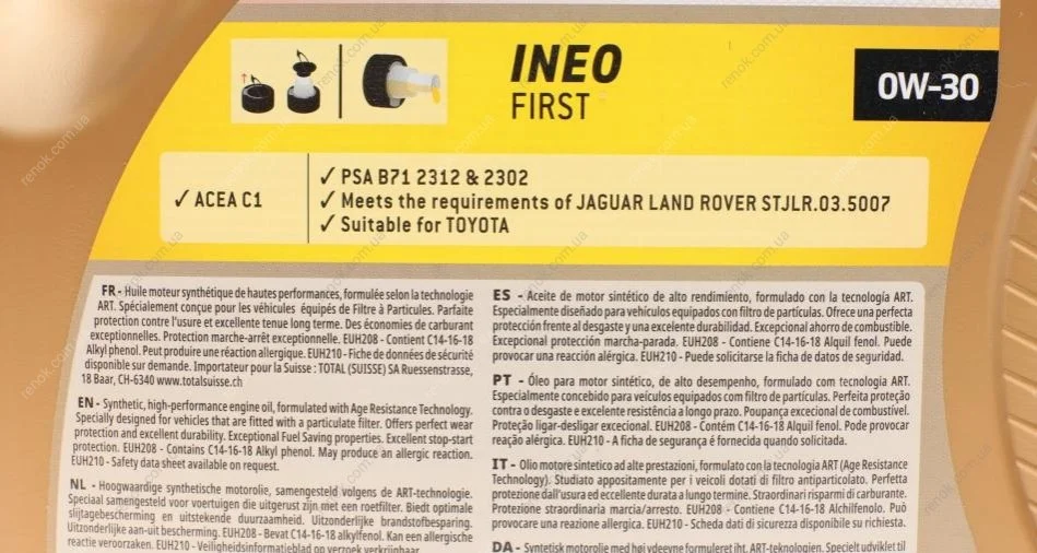 Масло 0W30 Ineo First (4L) PSA B71 2312/B71 2302 TOTAL 213834