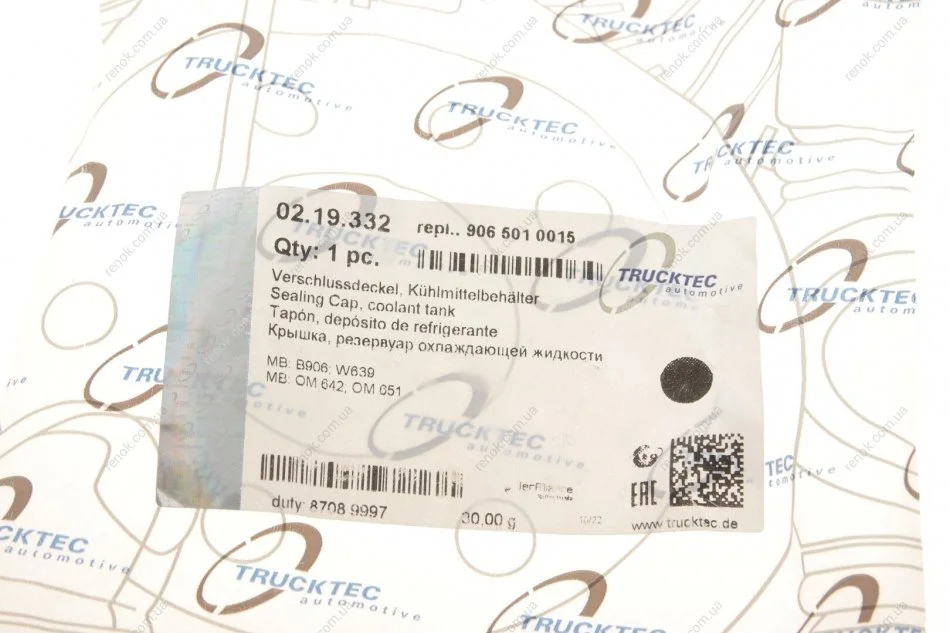 Крышка расширительного бачка MB OM646/651 2.2CDI TRUCKTEC 02.19.332 (a9065010015, 6395010015, 9065010015)