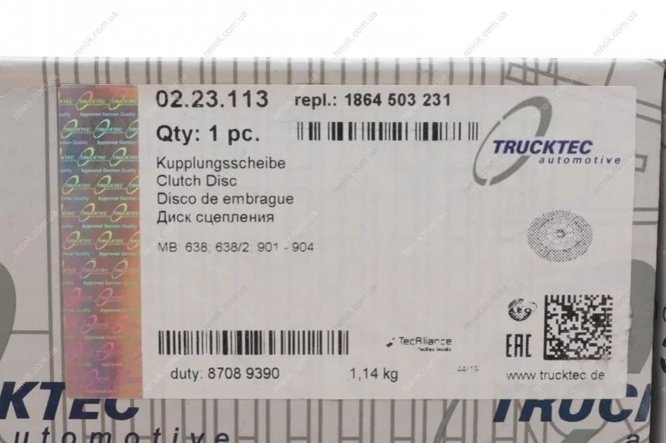Диск сцепления MB Sprinter 308/Vito (W638) 110TD 2.3D (d=228mm) TRUCKTEC 02.23.113 (0142503503, 0142503603, 0152501603)