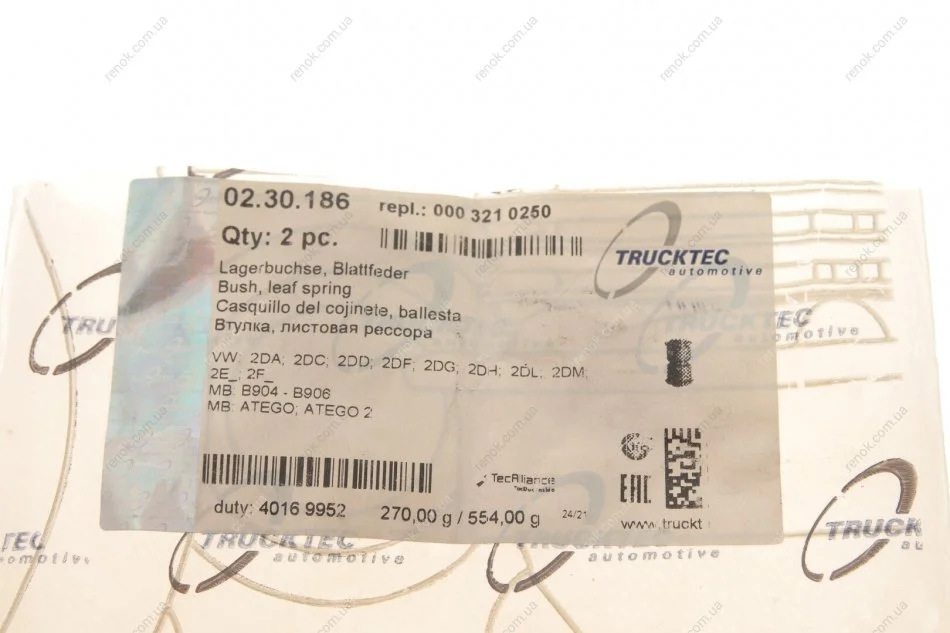 Сайлентблок рессоры (задней) MB Sprinter 412-416 -06 TRUCKTEC 02.30.186 (0003210250, 05118703AA, 2D0511171A)