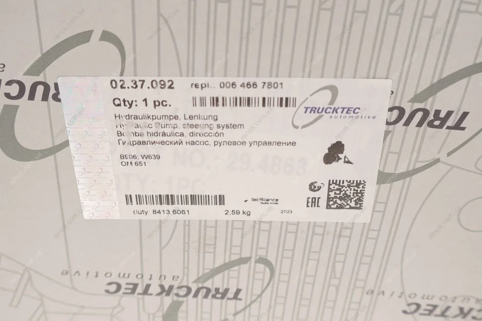 Насос ГУР AUTOMOTIVE TRUCKTEC 02.37.092 (0064667801, 0064661701, A0064661701)