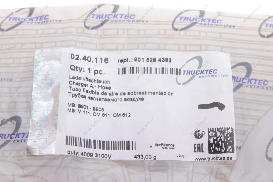 Патрубок интеркулера (нижний) MB Sprinter CDI 00-06 TRUCKTEC 02.40.116 (05104142AA, 5104142AA, 9015284382)