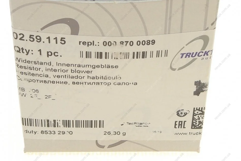 Реостат печки VW Crafter/MB Sprinter 06- TRUCKTEC 02.59.115 (0008700089, 2E0915693, 68012681AA)