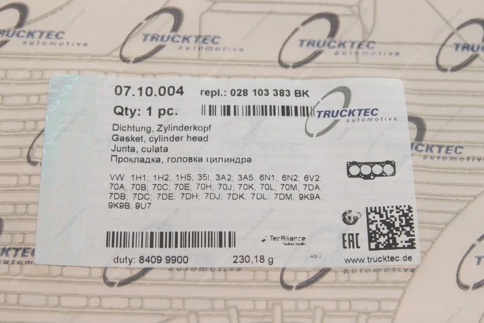 Прокладка ГБЦ VW Caddy II 1.9D (3 метки) TRUCKTEC 07.10.004 (028103383BK, 028103383AK)