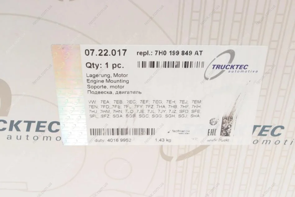Подушка двигуна AUTOMOTIVE TRUCKTEC 07.22.017