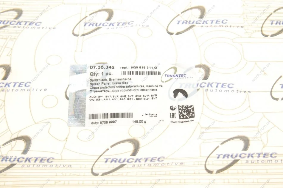 Защита диска тормозного (переднего) (L) VW Golf VII 12- TRUCKTEC 07.35.342
