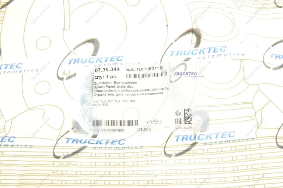 Защита диска тормозного (переднего) Audi Q7/VW Touareg 02- TRUCKTEC 07.35.344