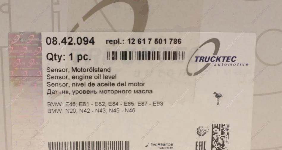 Датчик уровня масла BMW 3 (E46/E90/F30/F80)/5 (E60/F10)/X5 (F15/F85) 04-18 TRUCKTEC 08.42.094 (12617501786)