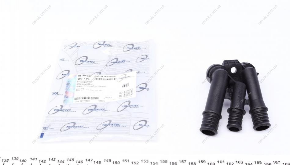 Фланец системы охлаждения BMW 3 (E36) 1.6-3.2 90-00 (тройник) TRUCKTEC 08.59.037 (64118390697)