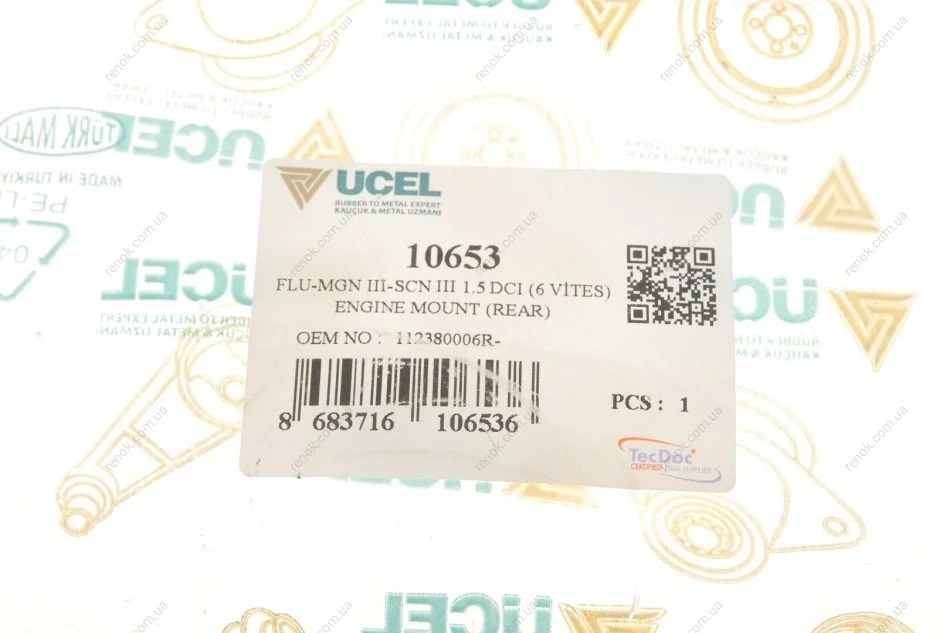 Подушка двигателя (задняя/нижняя) Renault Megane/Scenic 1.5dCI 09- UCEL 10653 (112380006R)