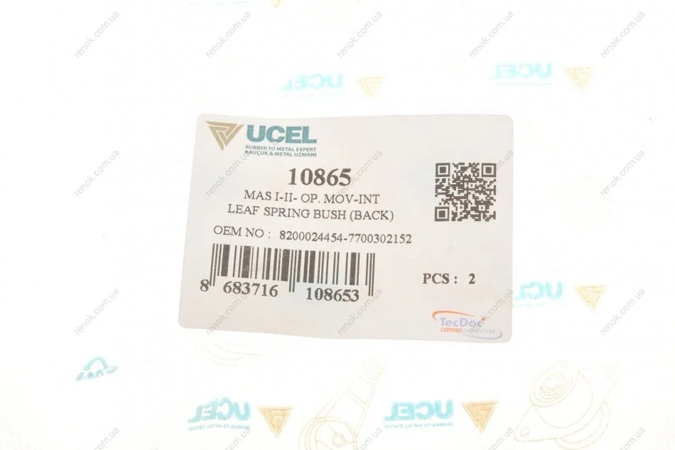 Сайлентблок рессоры (задней) Renault Master 98- (14x40x77) UCEL 10865 (5504600QAA, 5504600QAB, 7700302152)