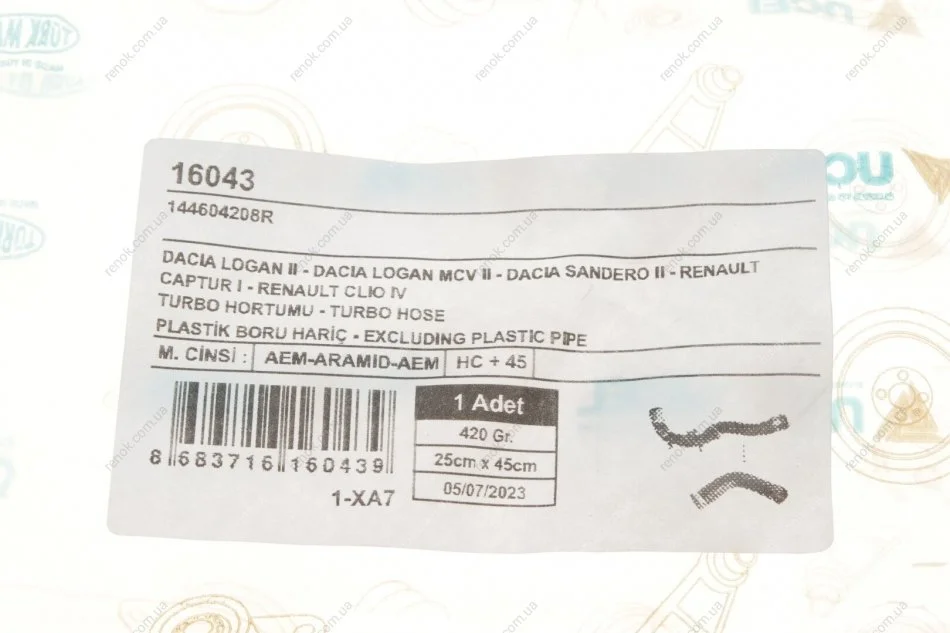 Патрубок интеркулера (R) Renault Clio IV 0.9 TCe 12- UCEL 16043 (144604208R)