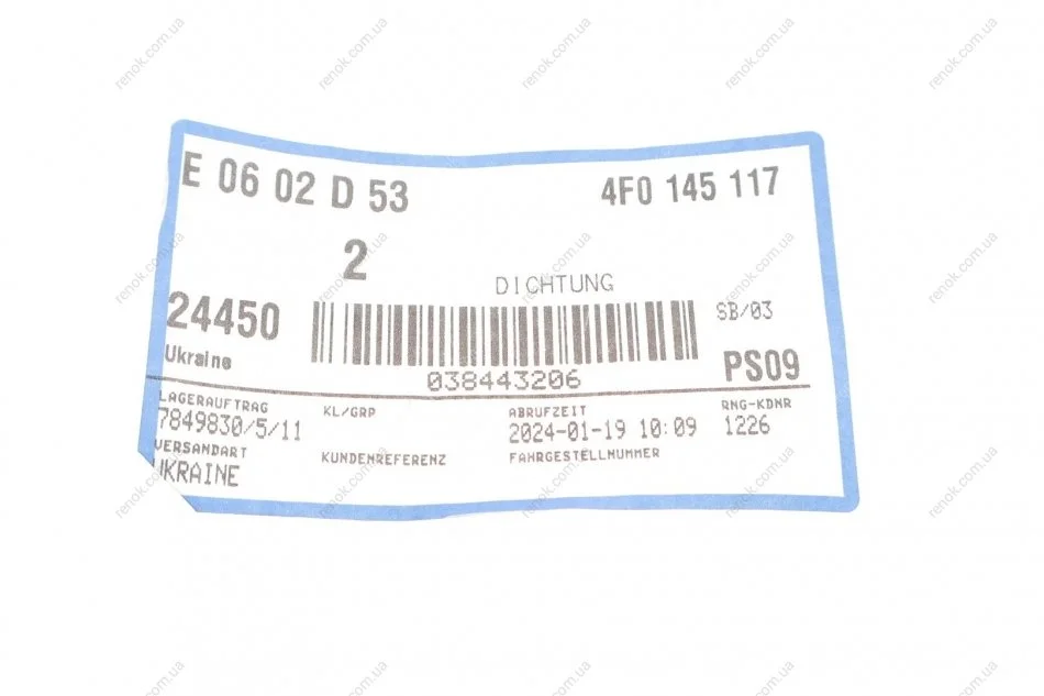 Прокладка VAG 4F0145117