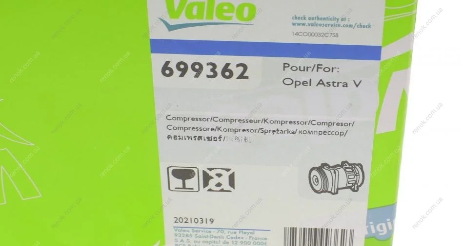 Компрессор кондиционера Opel Astra 02-10/Meriva 05-10/Zafira 1.6/1.8 05-15 Valeo 699362