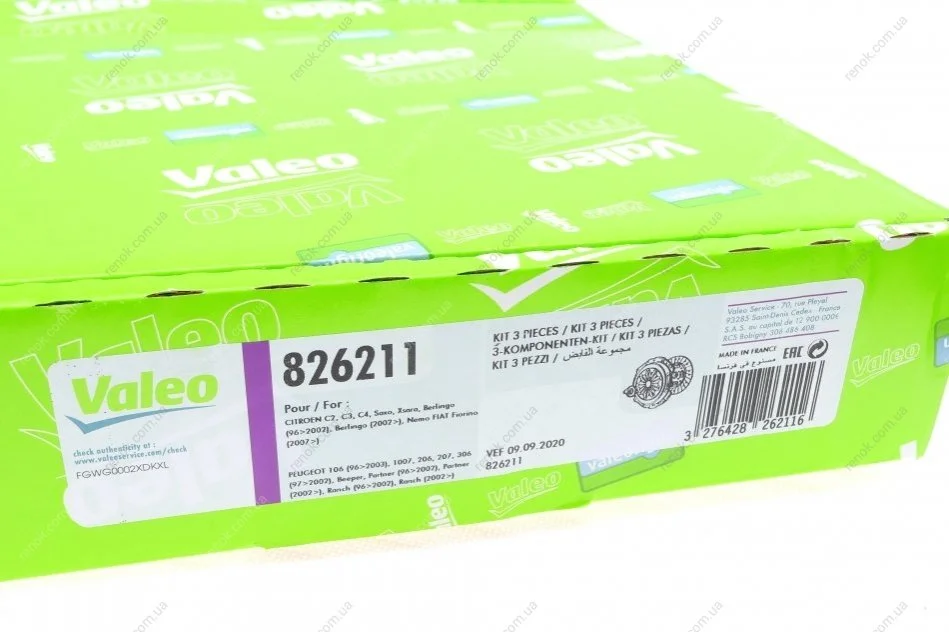 Комплект сцепления Citroen Berlingo/Peugeot Partner 1.4i 96- (d=200mm) (+выжимной) Valeo 826211 (1608222080, 1609604480, 205302)
