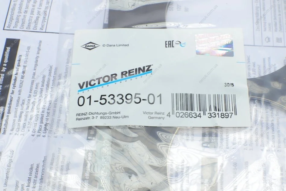 Аналоги "01-53395-01 VICTOR REINZ":