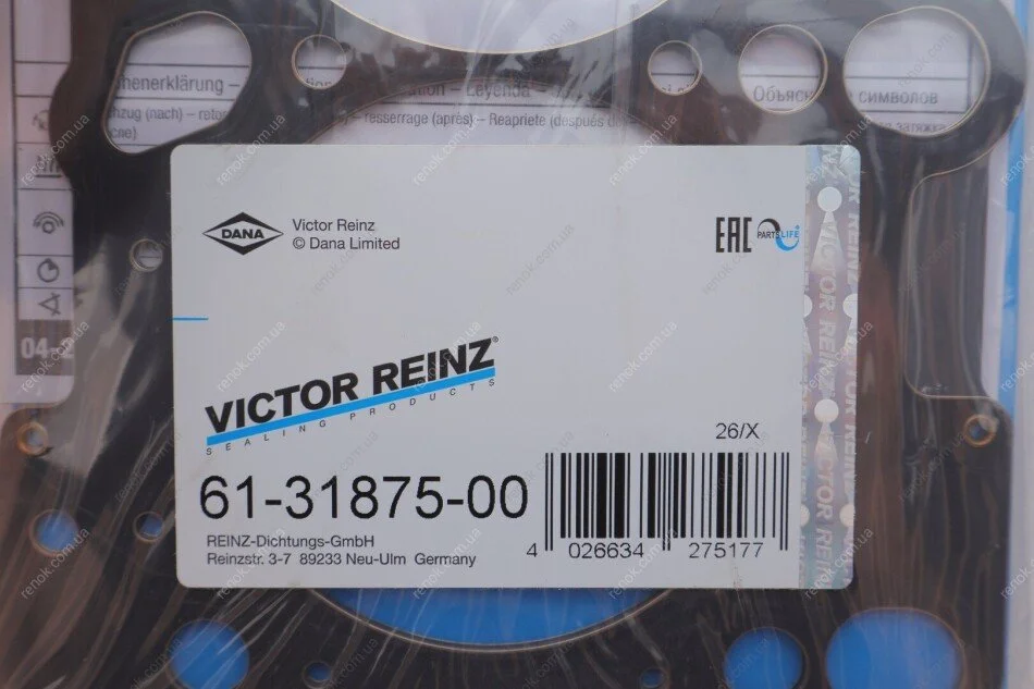 Аналоги "61-31875-00 VICTOR REINZ":