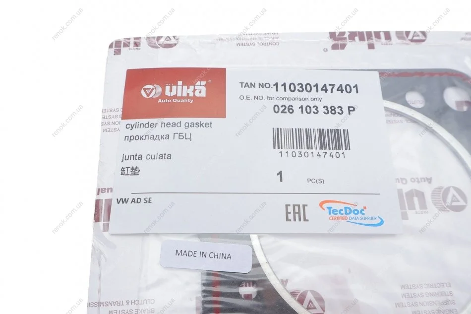 Прокладка ГБЦ Audi 80/100/VW Caddy I/Golf I-III/Passat B2-B4 1.6/1.8 84-92 Vika 11030147401 (0209H7)