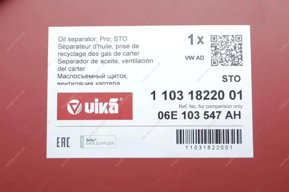 Маслоотделитель Audi A4, A5, A6, A7, A8, Q5, Q7/VW Touareg (13-) (усиленный) (11 Vika 11031822001