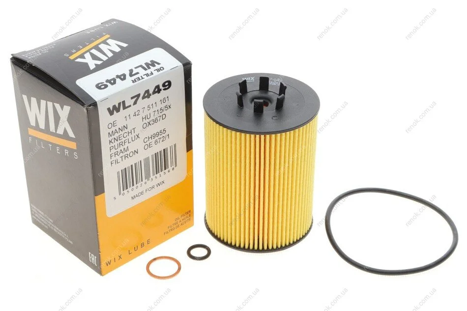 Фильтр масляный двигателя /672/1 (WIX-Filtron) WIX FILTERS WL7449 (11427511161, 11427506677)