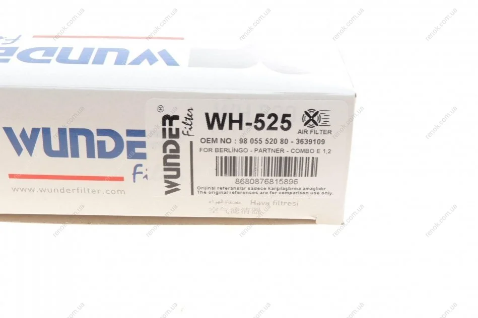 Фильтр воздушный Citroen Berlingo/C3/C4/Opel Combo/Peugeot 2008/208/3008/308/5008/Partner 1.2 13- WUNDER FILTER WH 525 (9805552080)