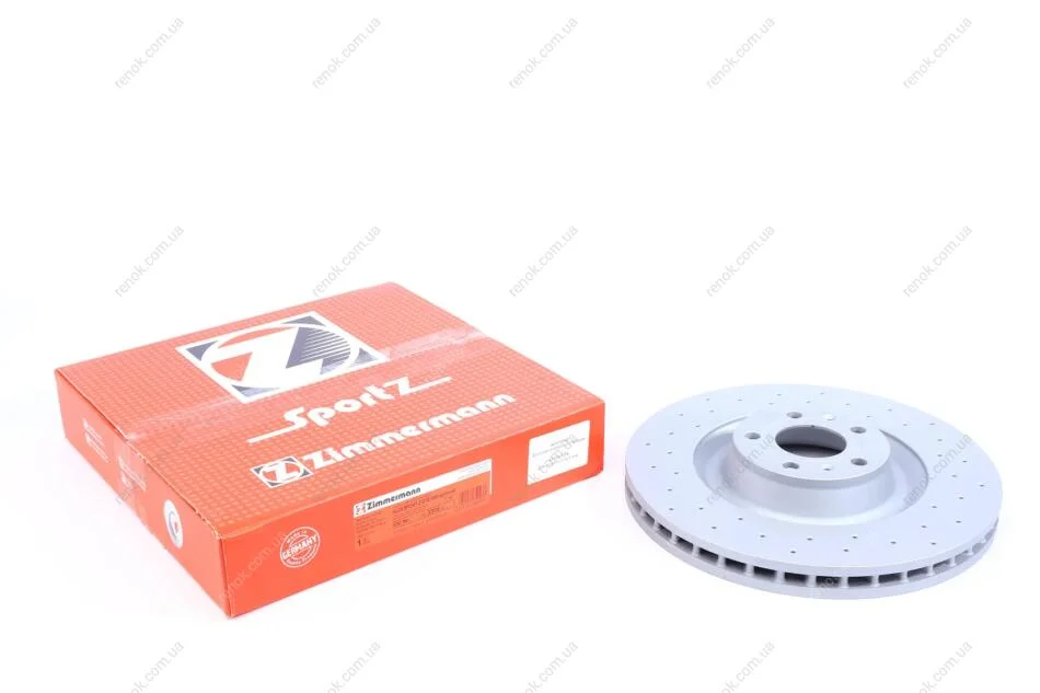 Диск тормозной (передний) Audi A6/A8/VW Phaeton 04-16 (360x34) (с покрытием) (с отверстиями) (вент.) ZIMMERMANN 100.3305.52 (4E0615301G, 4E0615301J, 4E0615301P)