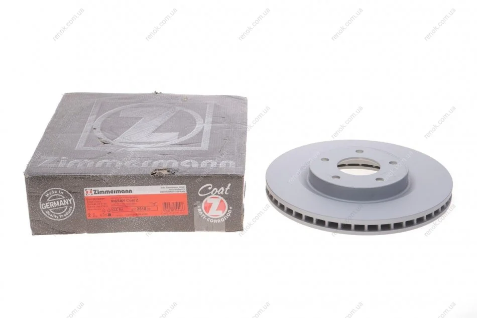 Диск тормозной (передний) Nissan X-Trail 2.0/2.5dCi 07-/Juke 1.6 10-(296x26) (с покрытием) (вентил) ZIMMERMANN 200.2518.20 (40206JE20A, 402061KC1A, 402069828R)