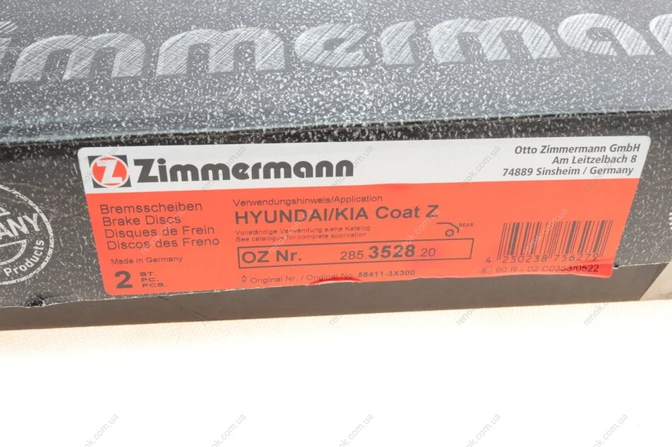 Диск гальмівний ZIMMERMANN 285.3528.20 (584113X300, 58411A6300)