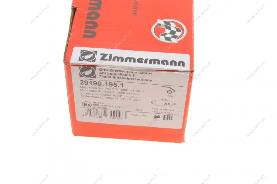Колодки тормозные (задние) MB Sprinter 209-319 CDI/VW Crafter 30-35 06- ZIMMERMANN 29190.195.1 (9064200100, A9064200100, 0044206920)