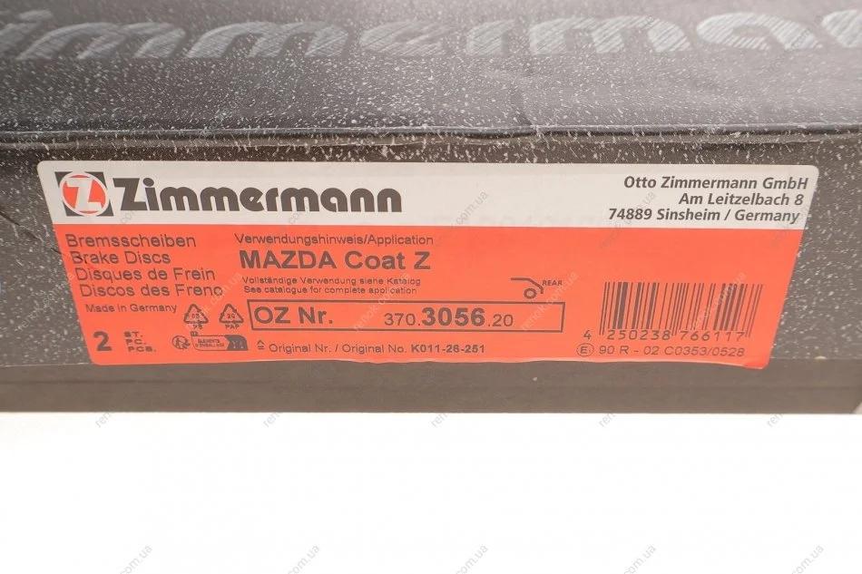 Диск тормозной (задний) Mazda CX-5 11-(303x10) (с покрытием) (полный) ZIMMERMANN 370.3056.20 (k01126251, K01126251A)