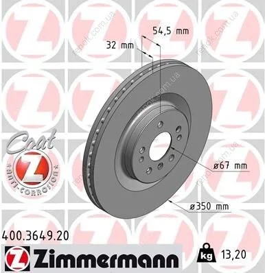 Диск тормозной ZIMMERMANN 400.3649.20 (1644210512, 1644211412, A1644211412)