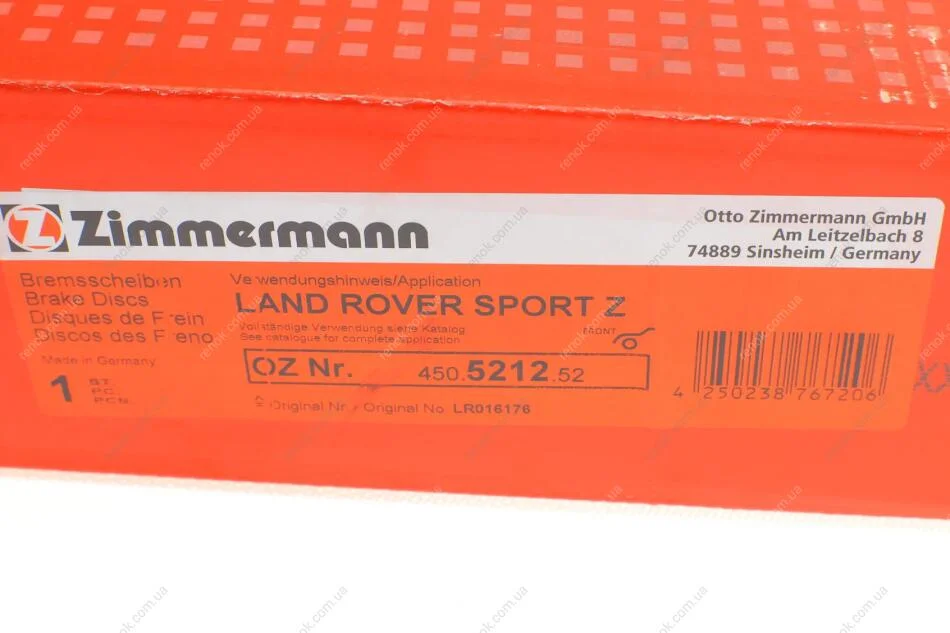 Диск гальмівний ZIMMERMANN 450.5212.52 (lr016176, lr098968)