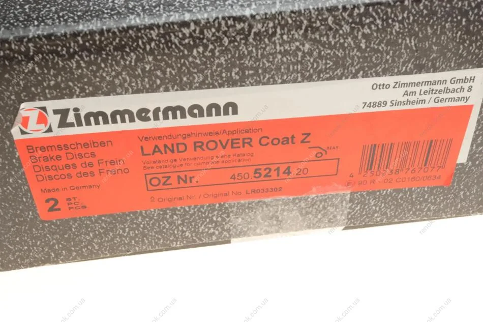Диск гальмівний ZIMMERMANN 450.5214.20 (lr033302, lr099036)